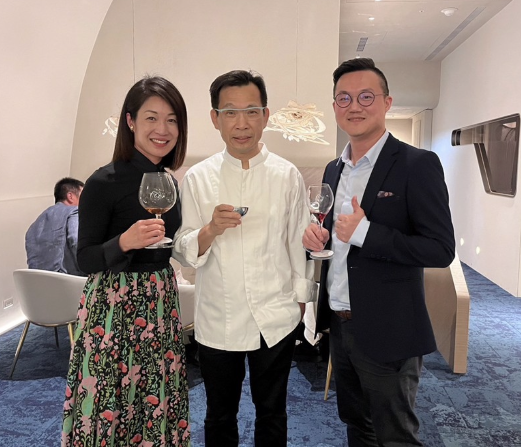 接著國際IWSA金牌的Gris de Noirs Extra Brut 黑中灰氣泡酒搭配台灣在地食材「烏魚子」,帶有青梅香氣與礦味的酒款,搭配充滿鹹香的烏魚子超對味;最後由Clairet W4輕紅酒搭配法餐,清透感的酒款,讓人感受到優雅美好的夜晚。